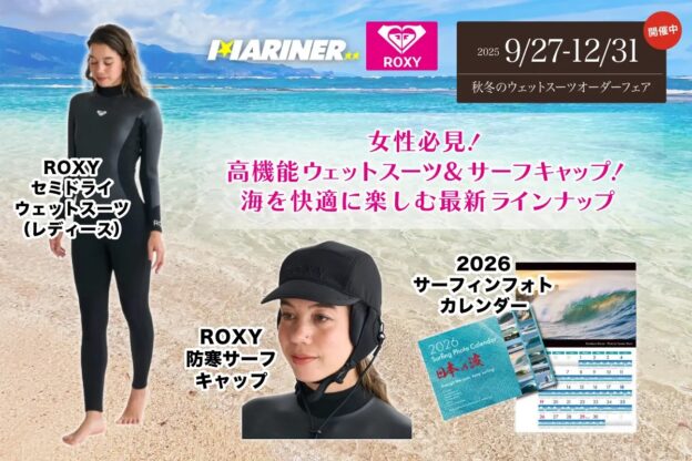 今回はROXYからウェットスーツ、サーフキャップ、そして2026年のサーフィンフォトカレンダーをご紹介します♪