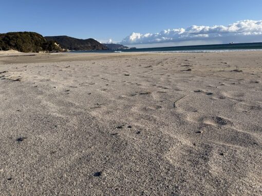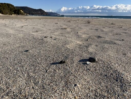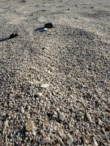 西風が続き、砂が飛ばされ、貝がらだけが