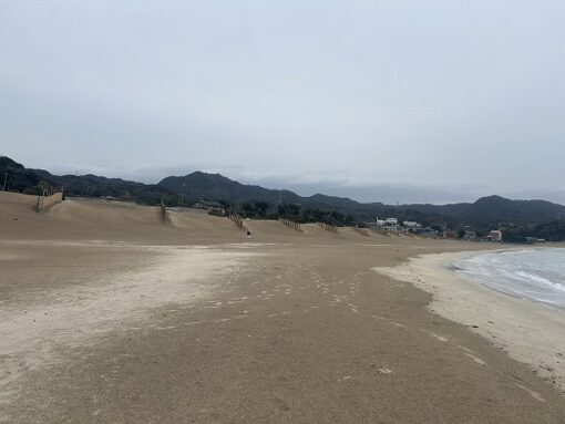 その為、朝の砂浜はローラー整備の後のグランドのように足跡もなく、なめらか。