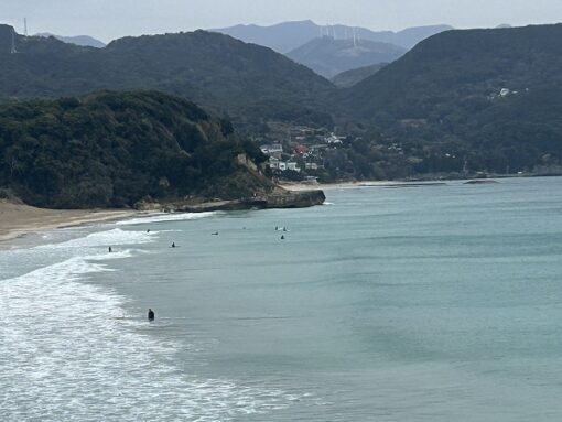 サーフィンの方は神社側に。